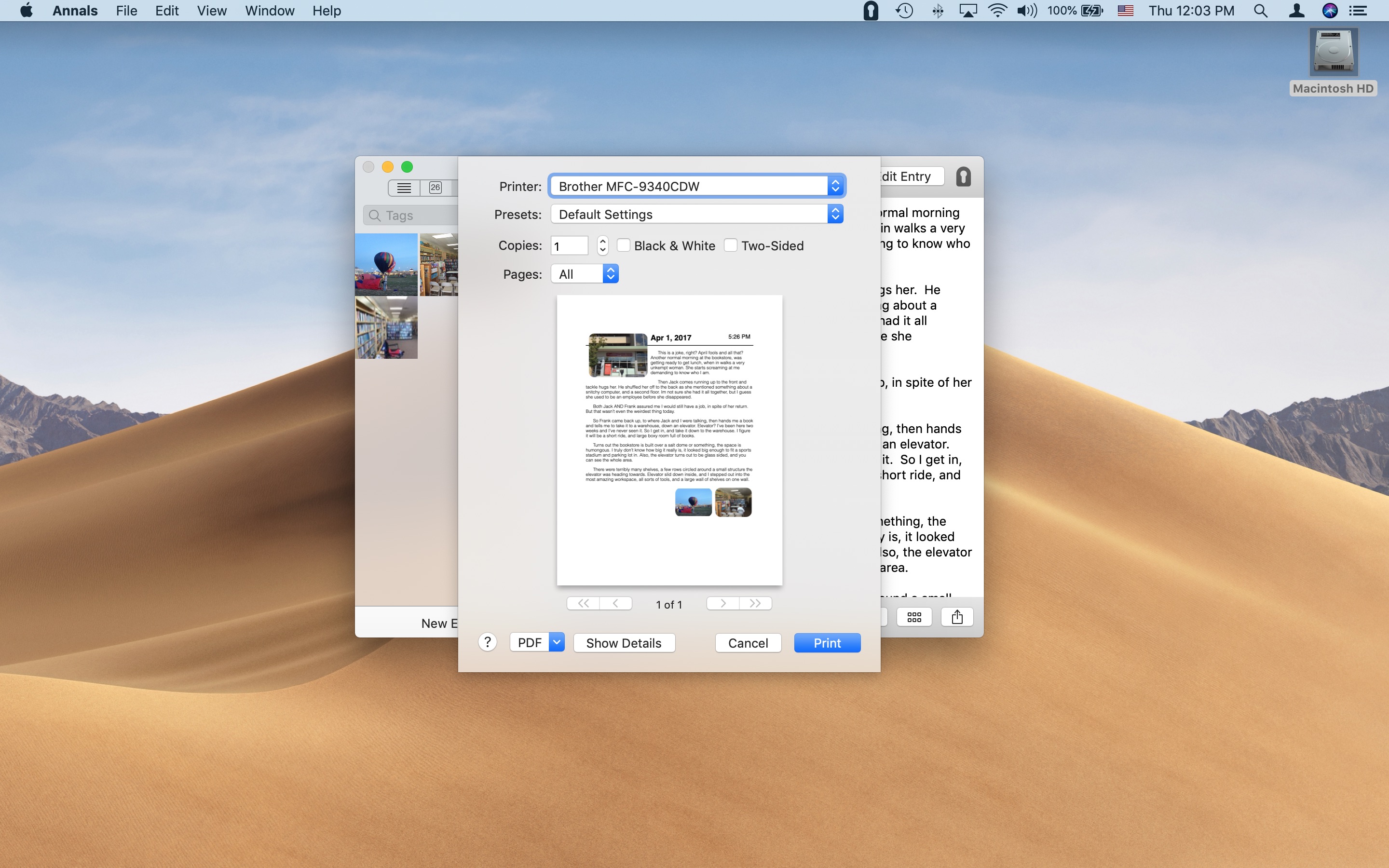 Annals supports lots of the cocoa features you've come to expect Drag and drop Beautiful printing Easy sharing with all the built in services.